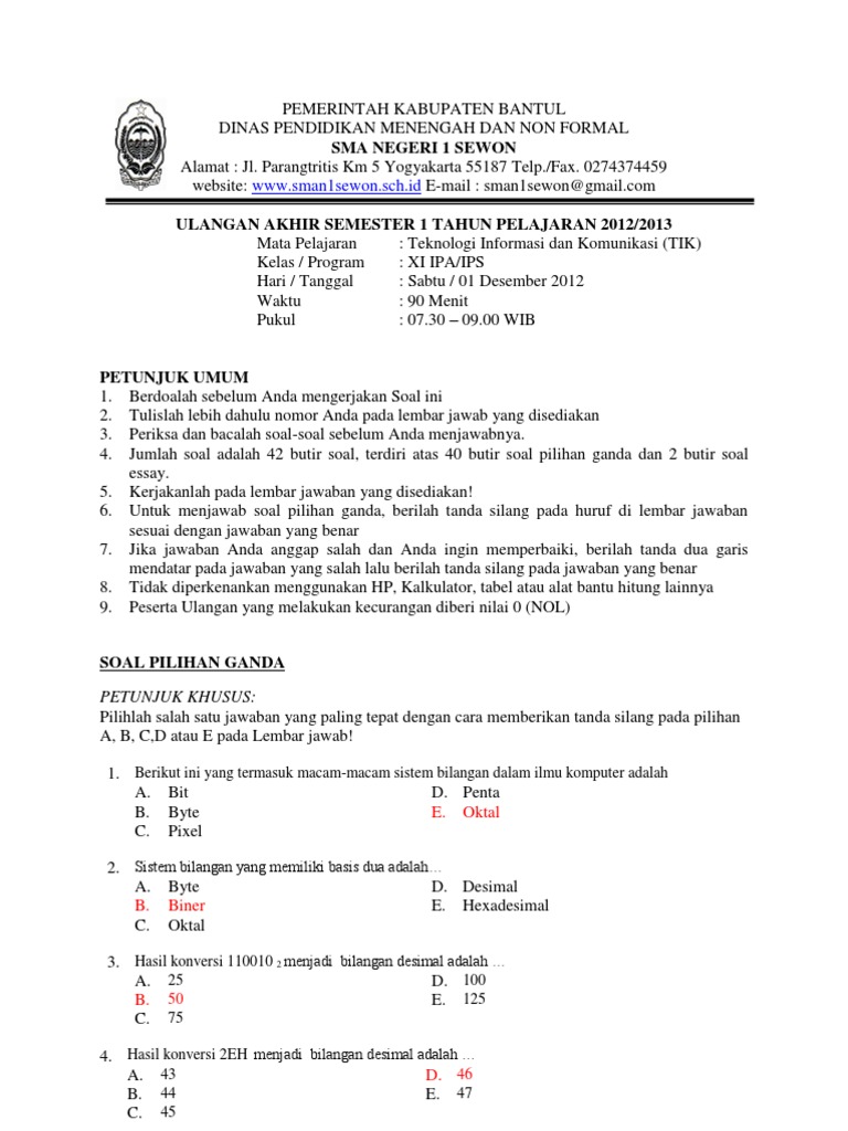 Kumpulan Soal Pilihan Ganda Dan Kunci Jawaban Keamanan Jaringan Komputer Berbagiruang Com from berbagiruang.com Maybe you would like to learn more about one of these? Check spelling or type a new query. We did not find results for: Soal pilihan ganda tentang komputer beserta jawabannya.